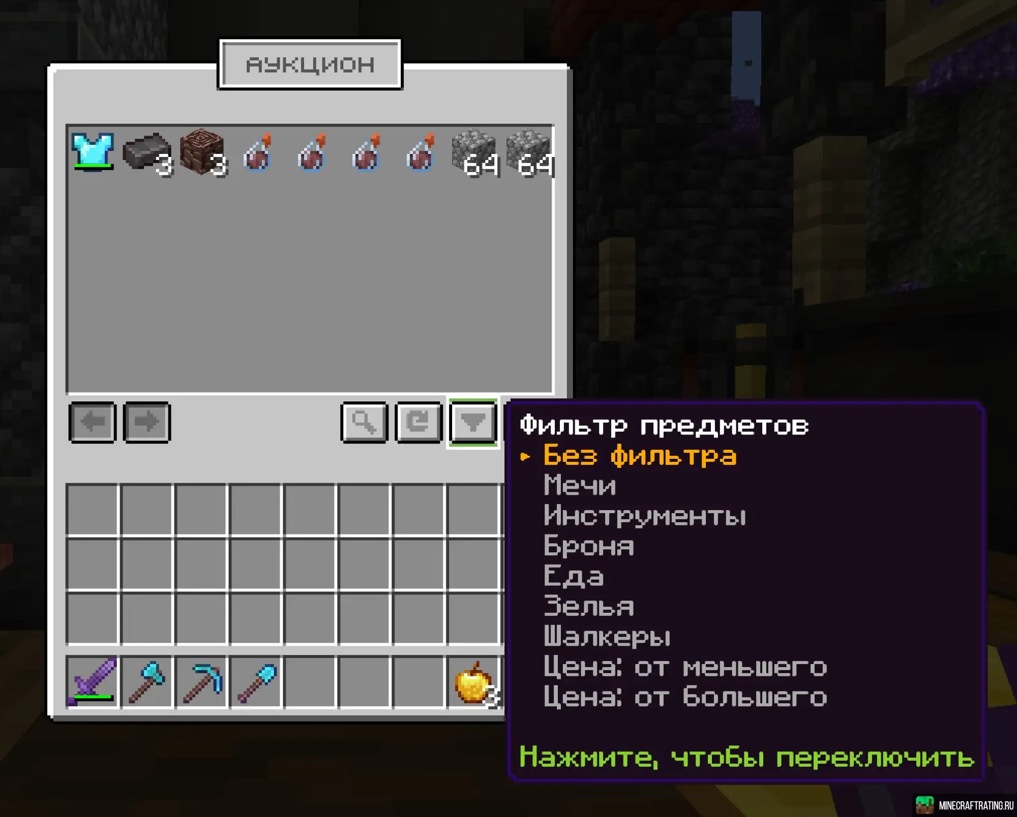И главная фишка нашего сервера – это динамическая экономика! Цены на предметы при их покупке и продаже зависят от спроса на них.
