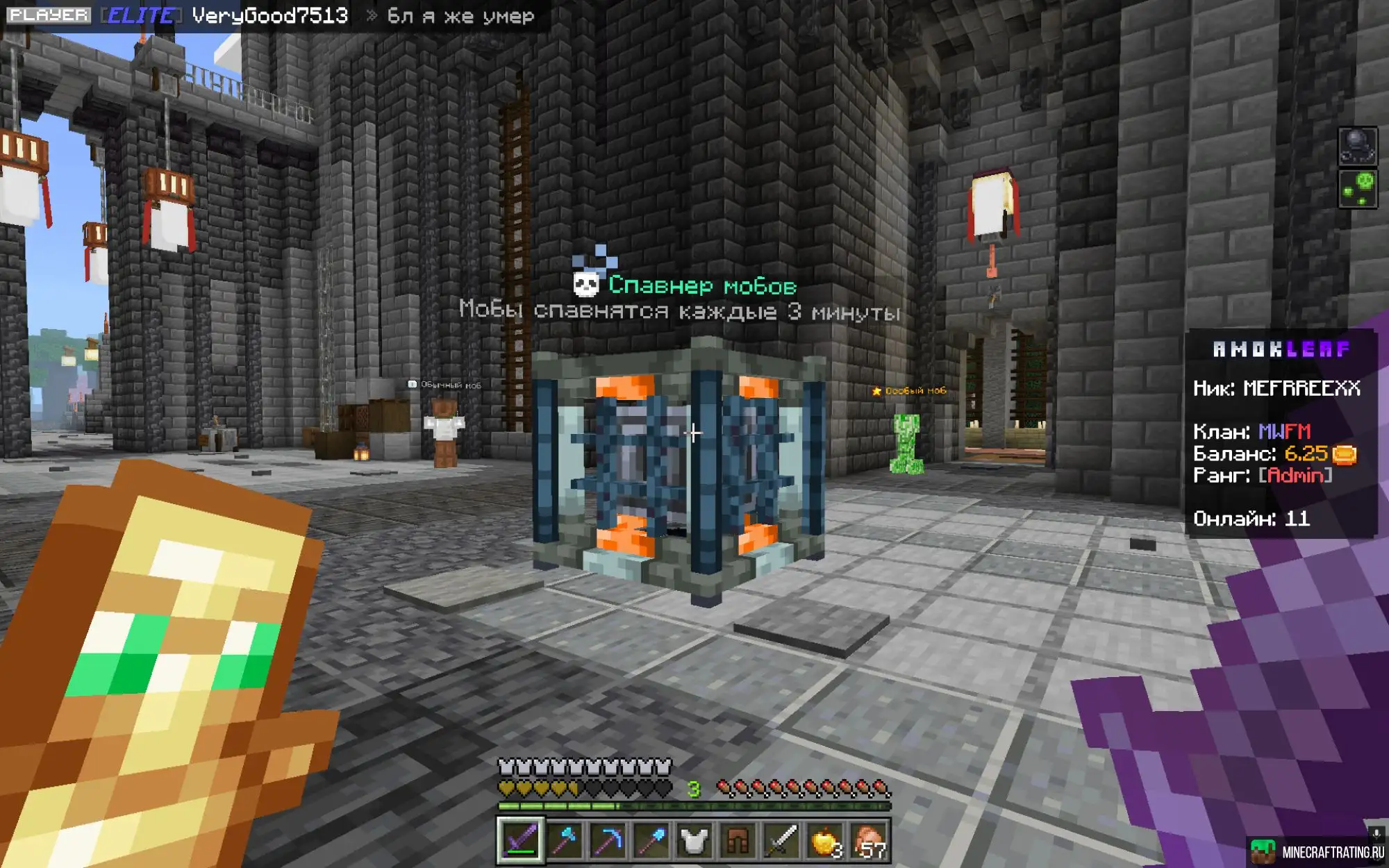 - PVP Арена с сильными мобами