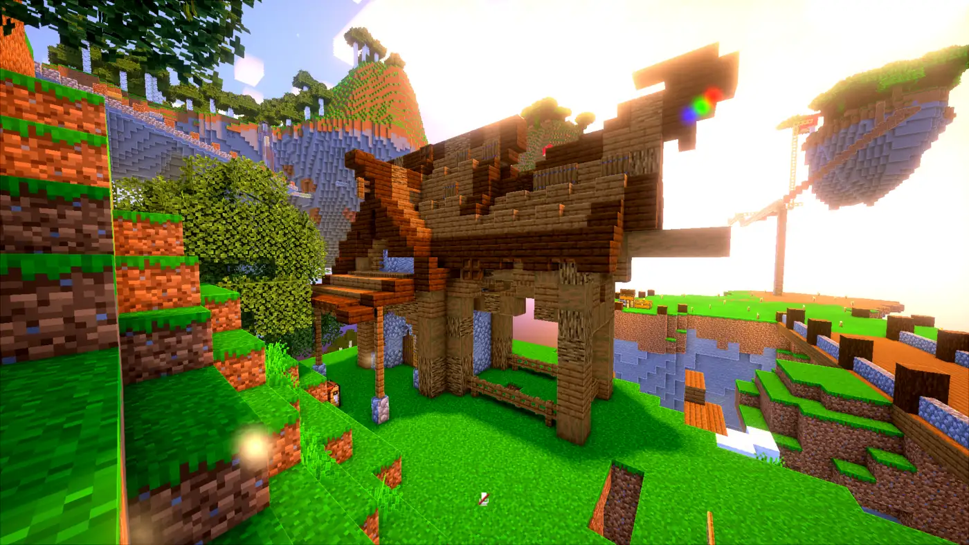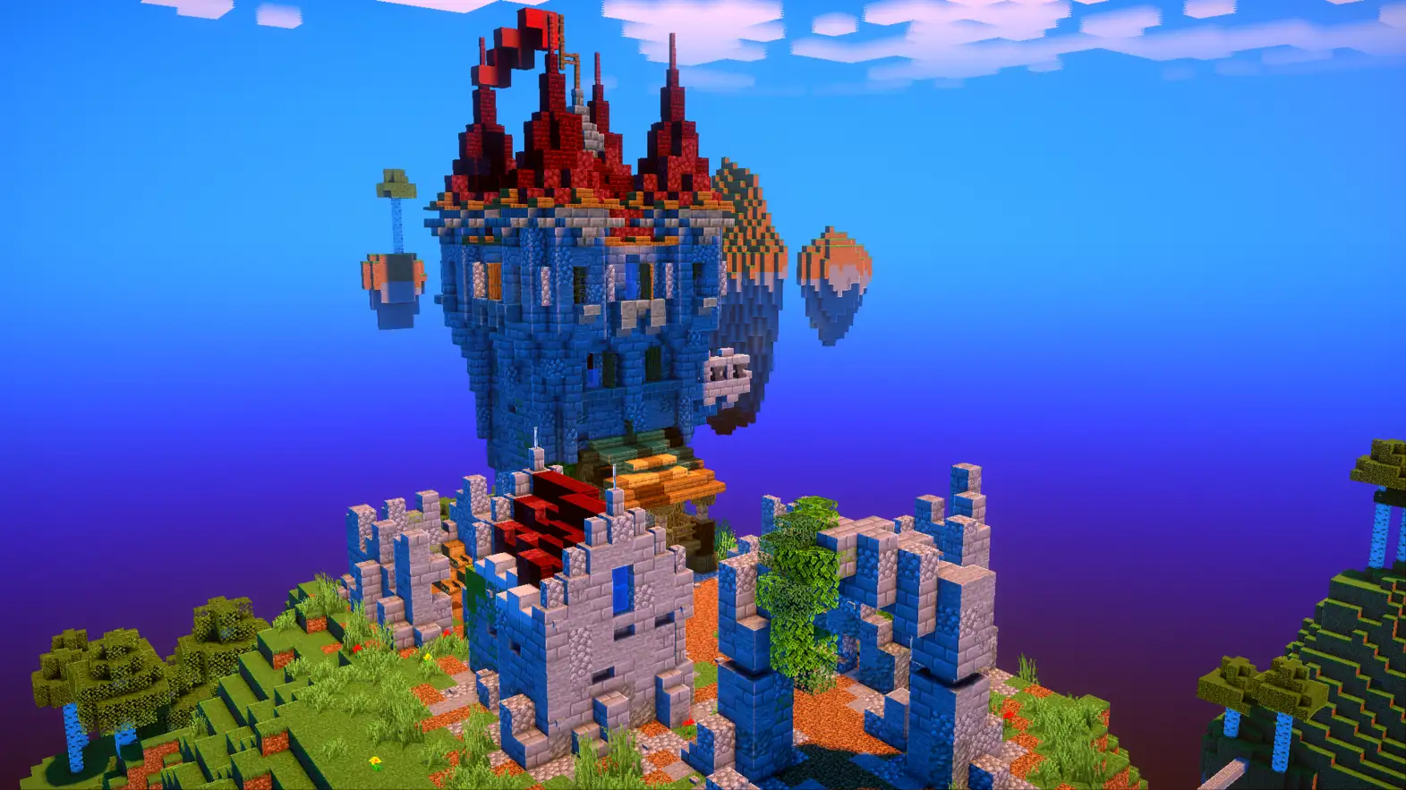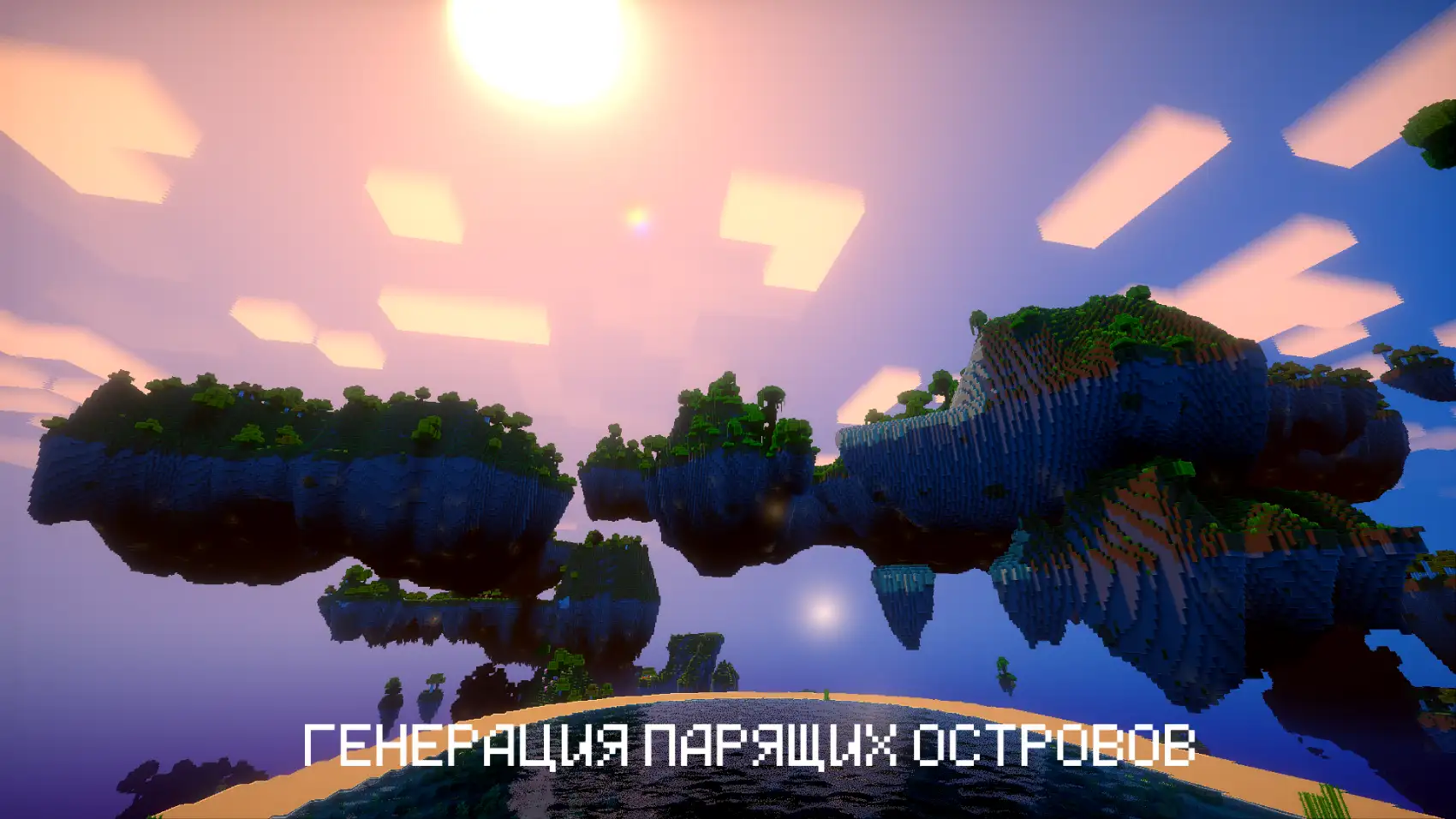 - Парящие острова — уникальная генерация мира вместо обычных ландшафтов