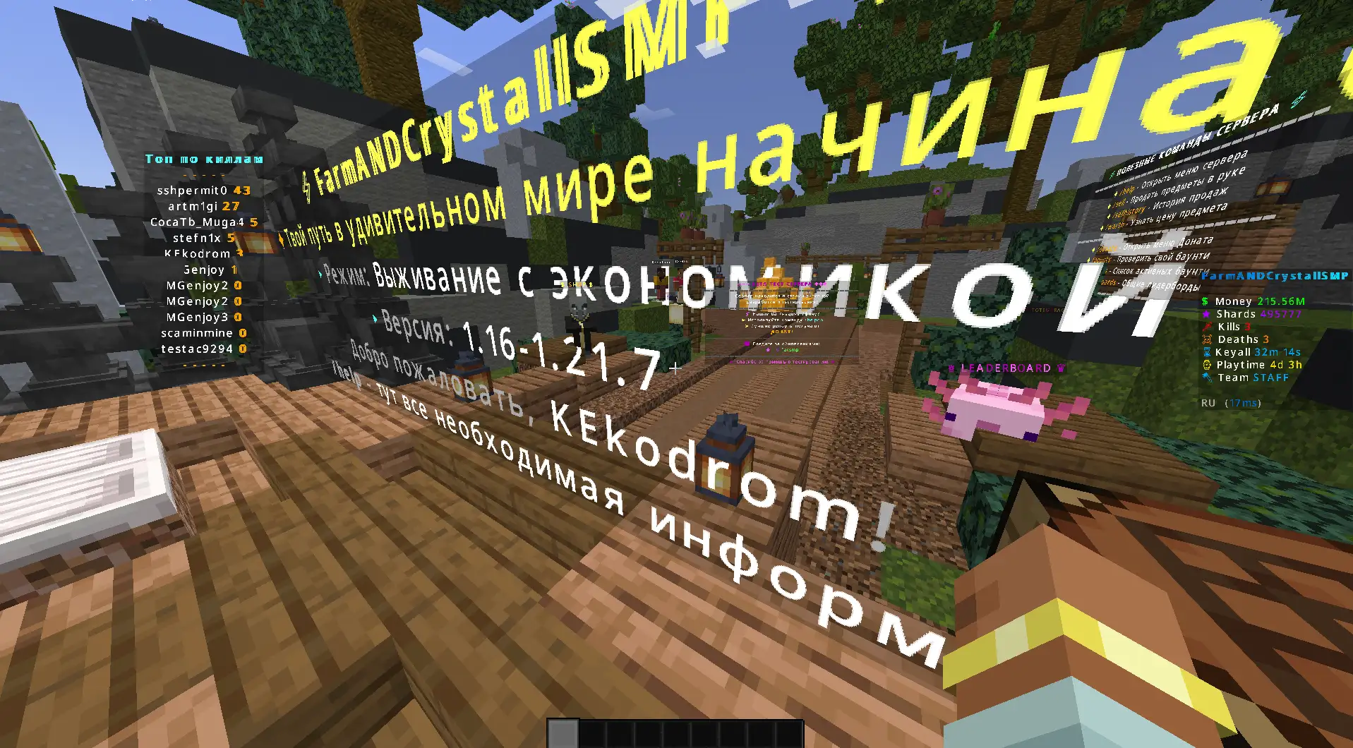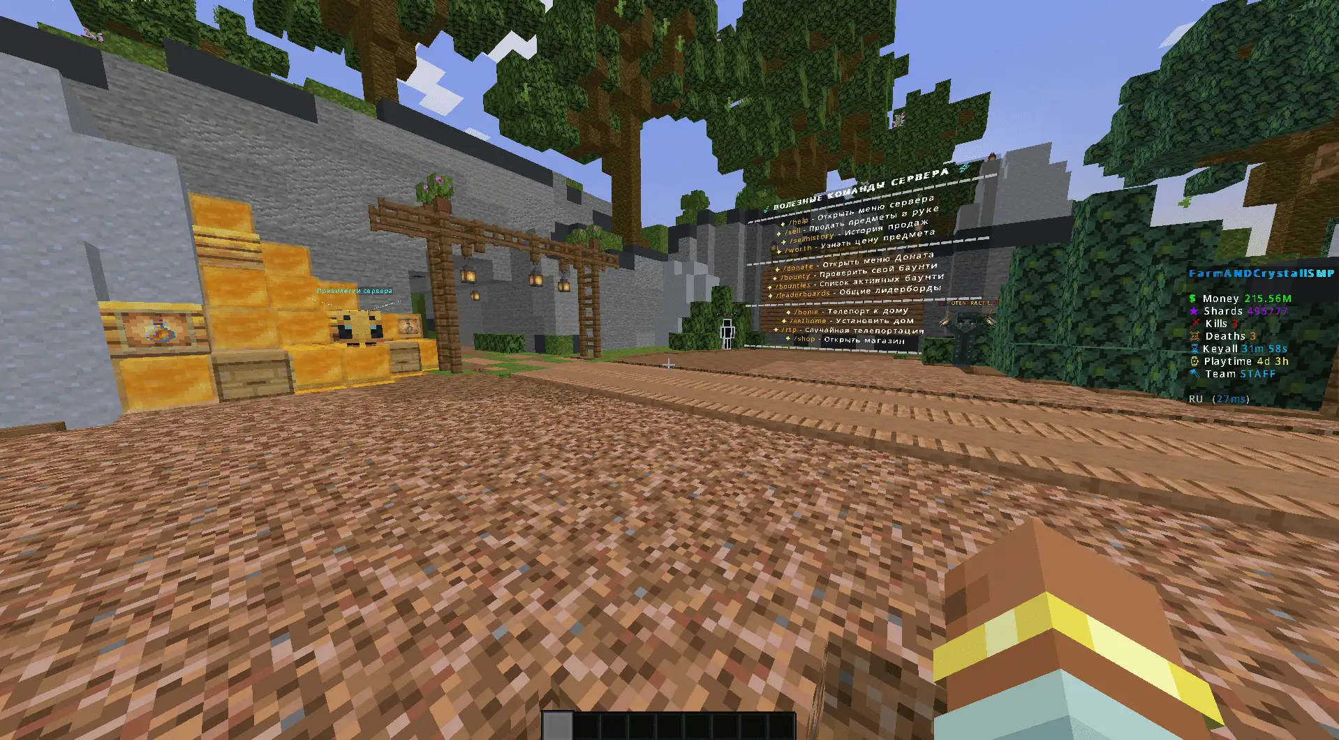 - Игровая валюта (/money), торговля и аукцион (/ah).