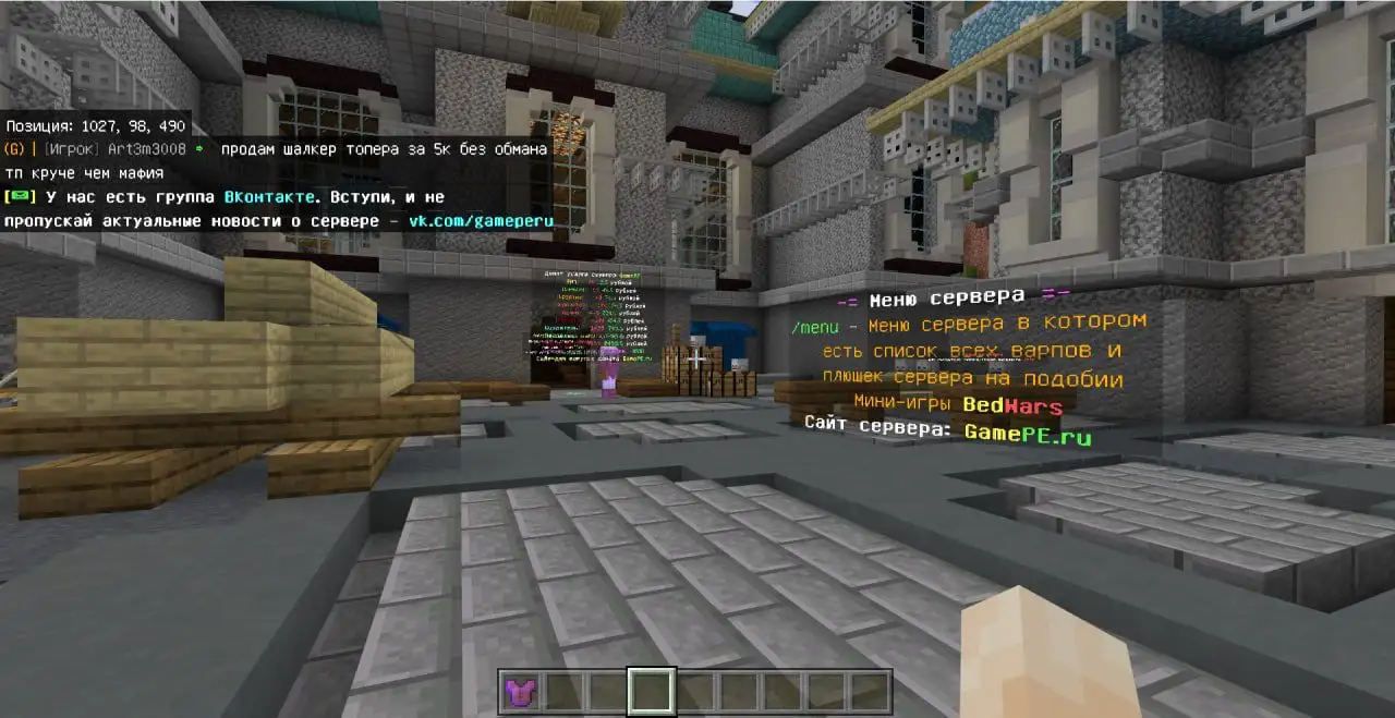 Здравствуйте, уважаемые игроки, проект "GamePE" смело можно назвать лучшим сервером для игры в Minecraft Bedrock Edition! Вы можете зайти с любой версии, начиная с 1.1 и заканчивая 1.20!