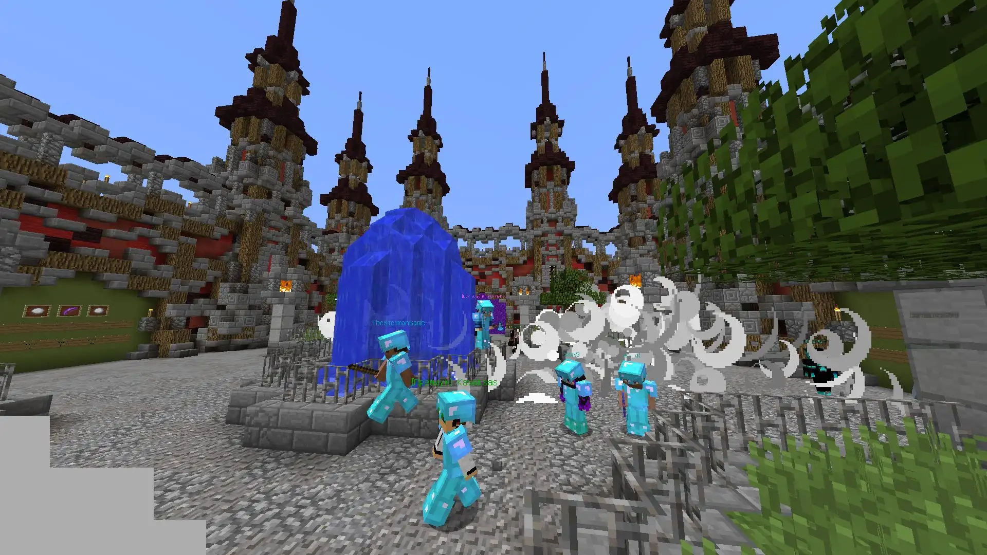 Наши преимущества: шкатулки с вещами, несколько разных миров для выживания со своими уникальными монстрами, система кланов, возможность создавать свой магазин, оружие, продуманная экономика, улучшенная система работ, мини-игры (BedWars и Paintball), а также: