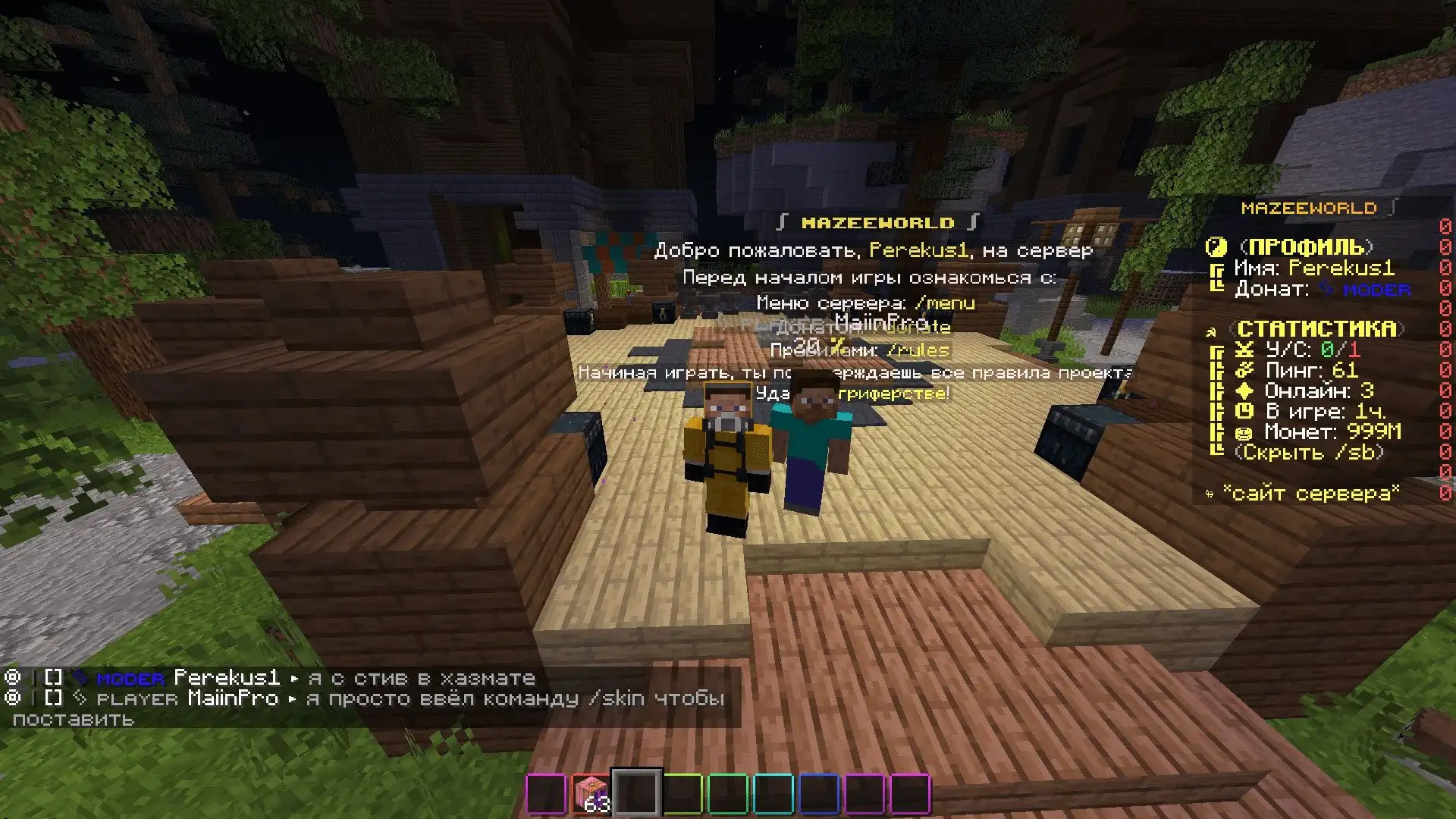 Привет всем, вас приветствует начинающий проект "MazeeWorld" - гриферский сервер Майнкрафт. Мы ежедневно работаем над ошибками, багами, улучшениями.