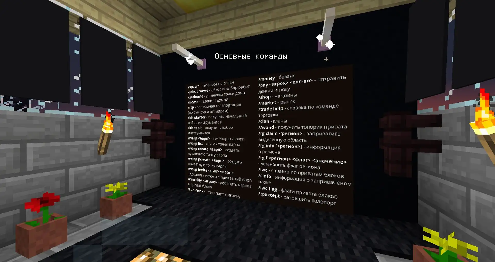 - Anarchy - Выживание в режиме анархии заключается в защите своей базы с помощью ценных блоков, а также в поиске и расхищении чужих. Построить неприступную базу достаточно сложно. Доступны кланы и рынок.