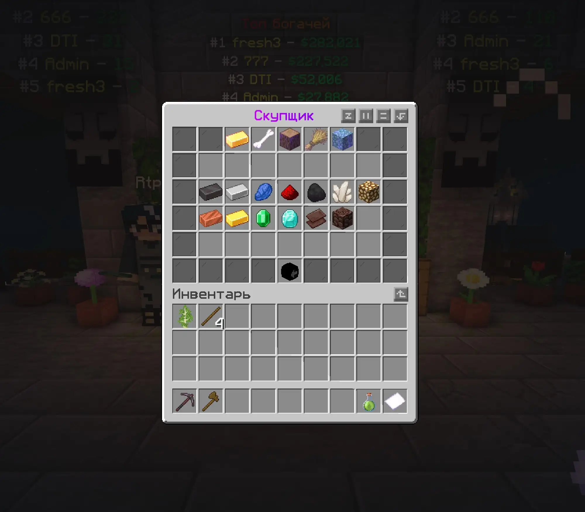 - Есть скупщик товаров (похож на холиворлд), работы, магазины на сундуках.