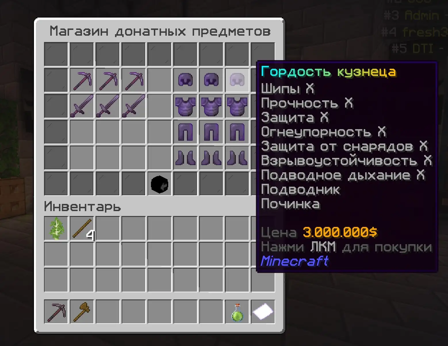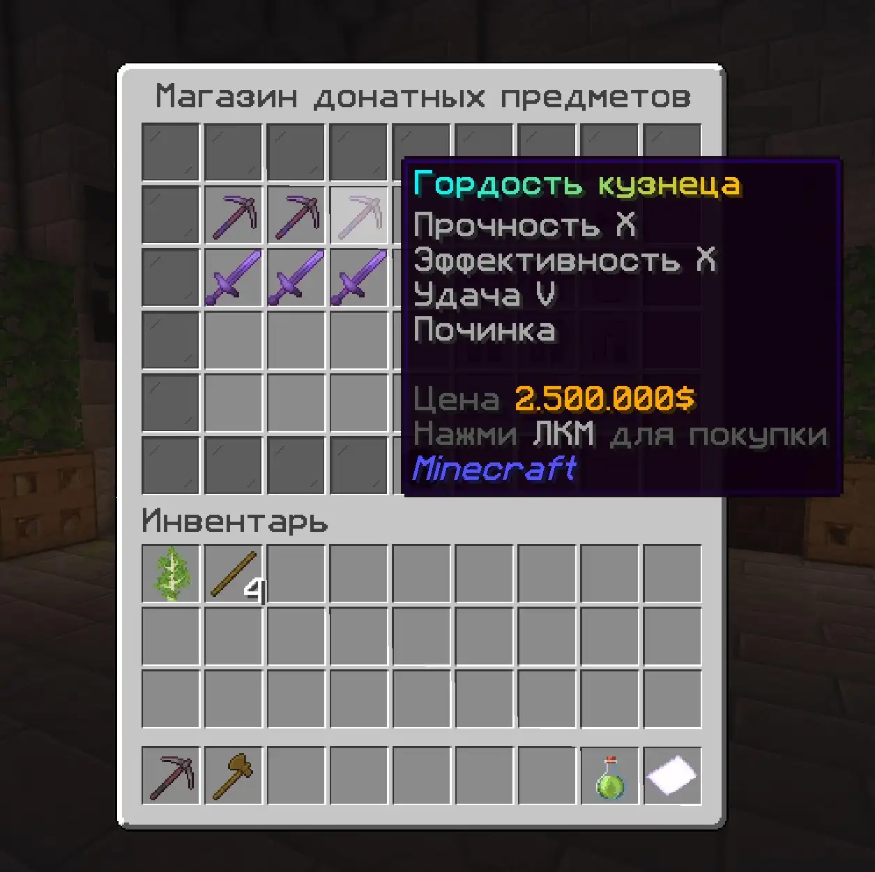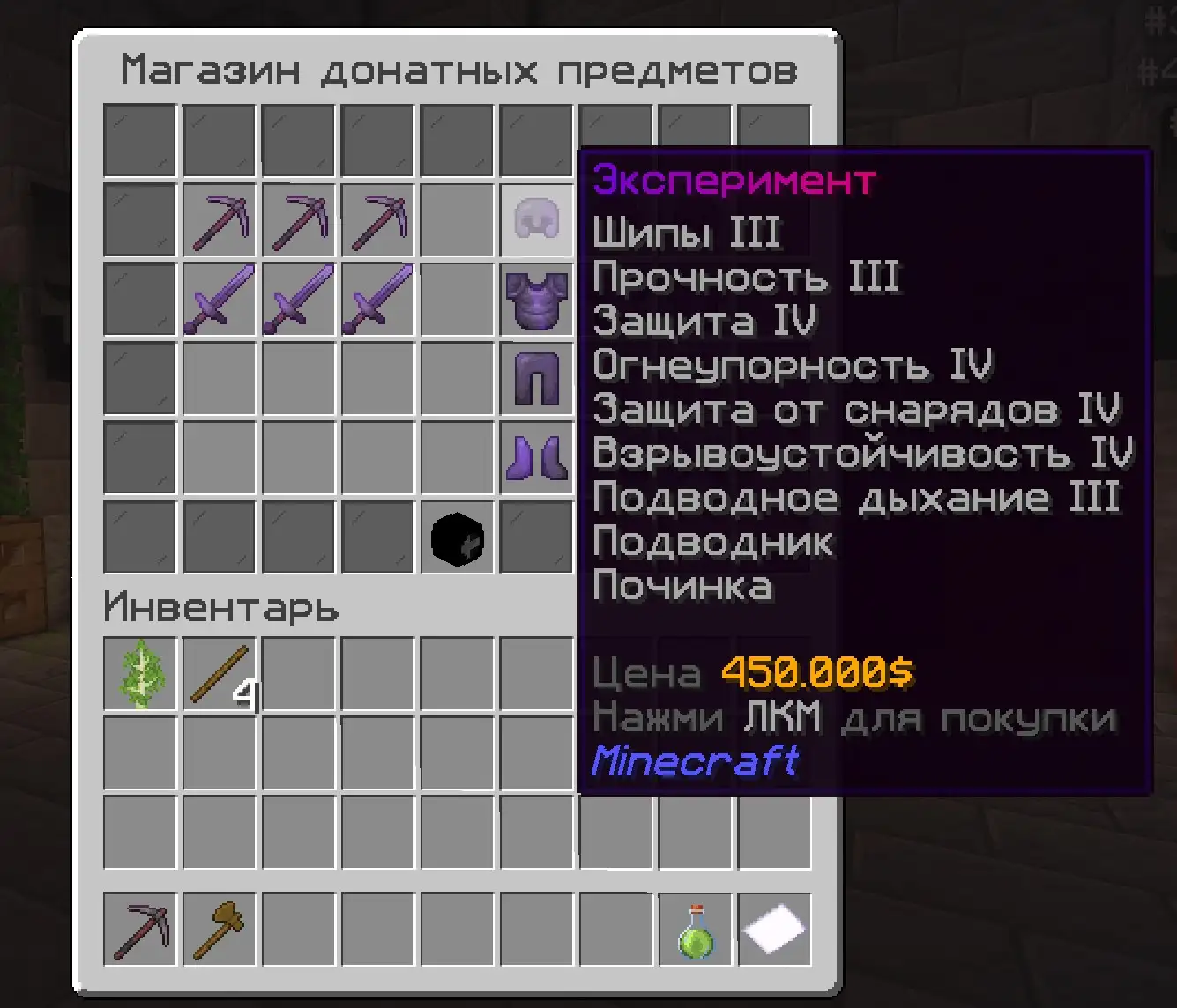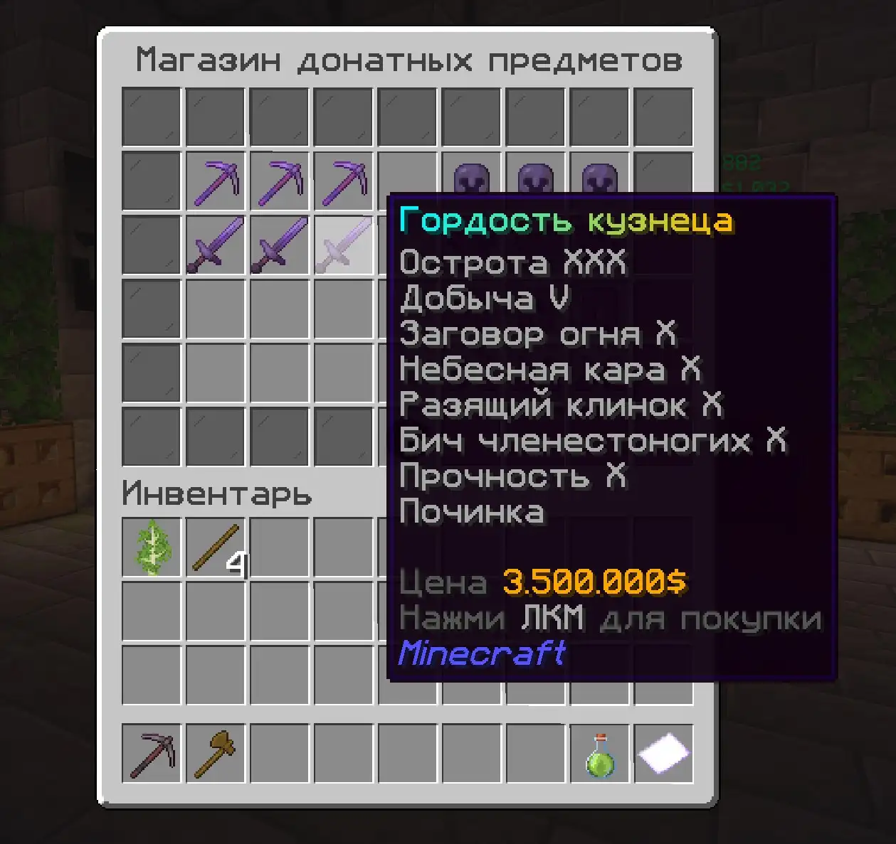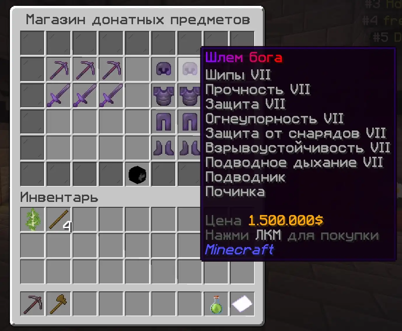 От скайблока, мы взяли задротскую составляющую. На сервере есть инструменты с добычей 4 и 5. Они стоят дорого. Чтобы заработать эти инструменты вам нужно строить всякие фармилки - фермы, копать и добывать что-то, торговать с игроками строя магазины. Развивайся - покупай инструменты с большей добычей чтобы получать еще больше добычи и получать еще больше денег, чтобы покупать еще более крутые вещи в игре! И все это можно делать ВООБЩЕ БЕЗ ДОНАТА! Самый крутой донат действительно можно купить за 2-3 дней фарма на крутых фермах - фармилках! На сервере полно примеров среди игроков кто покупает не первый раз крутые штуки за монеты!