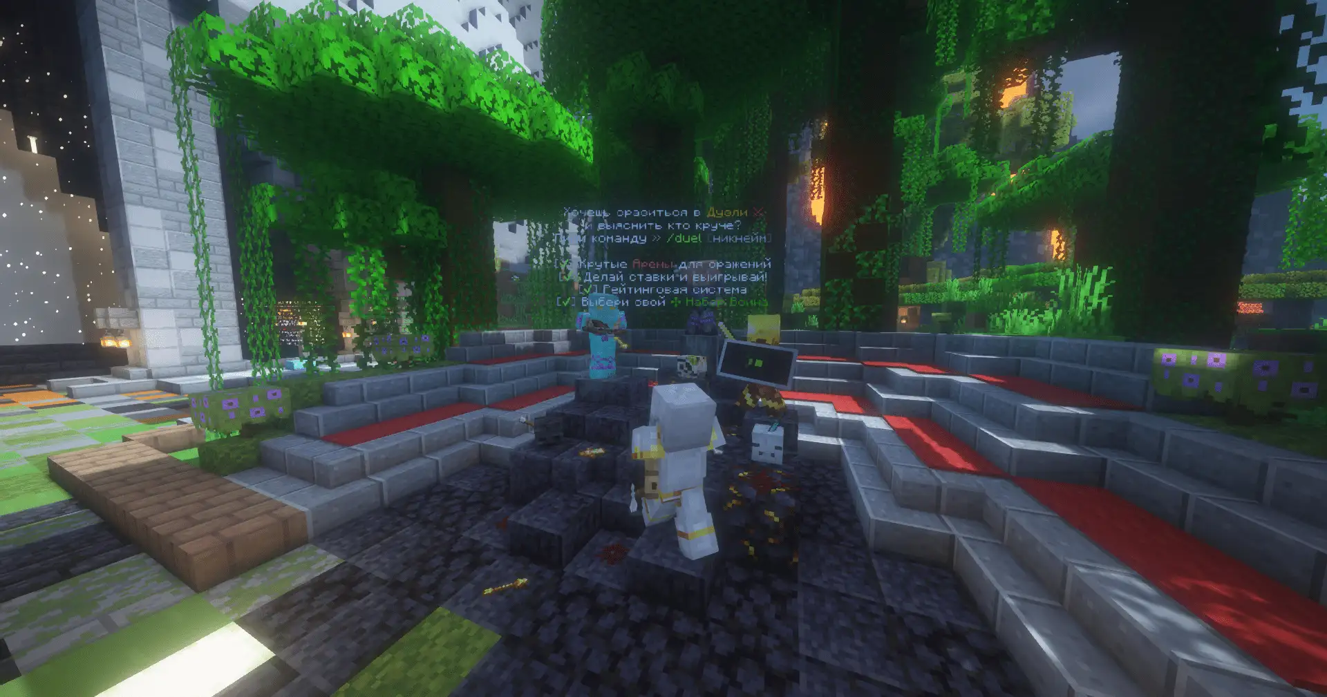 - Survival - Классический сервер с стандартными плагинами. На сервере есть PVP арена, Таверна, Аукцион, Титулы, Мистические Коробки, Игровые наборы, Ежедневные награды, Банк та другое... Тут запрещено гриферство, хочешь убить игрока? Иди сразись с ним на PVP арене!